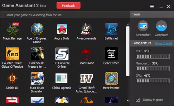 هو البرنامج الذي يسرع ويحسن جهاز الكمبيوتر الخاص بك عن استخدامه للألعاب . البرنامج يساعدك على مراقبة درجة حرارة المعالج، كارت الشاشة واللوحة الأم، وإذا ما ارتفعت درجة الحرارة أحد هذه المكونات يقوم البرنامج بإطلاق إنذار لتنبيهك ومعرفة ما يحدث. ليس ذلك فحسب، فهو يساعدك كذلك على مسح ذاكرة الوصول العشوائي لتحسين أداء الجهاز.